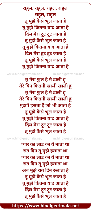 Lyrics of Tu Mujhe Kaise Bhul Jata Hai - तू मुझे कैसे भूल जाता है