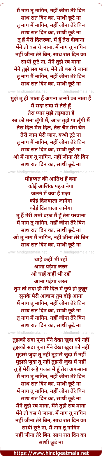 Poetic Translation - Lyrics of Tu Naag Mai Nagin - तू नाग मैं नागिन