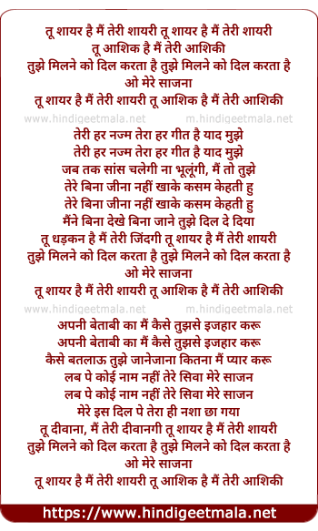 tu dhadkan hai main teri jindagi tu shayar hai main teri shayari
