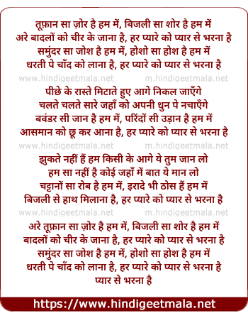 Lyrics of Tufaan Sa Jor Hai Ham Me - तूफ़ान सा ज़ोर है हम में