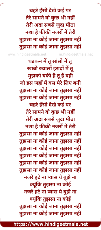 Lyrics of Tujh Sa Naa Koi - चहरे हँसी देखे कई पर