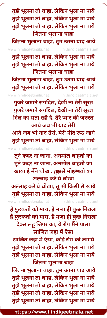 Lyrics of Tujhe Bhulna To Chaha Lekin Bhula Na Paye - तुझे भूलना तो चाहा, लेकिन भुला ना पाये