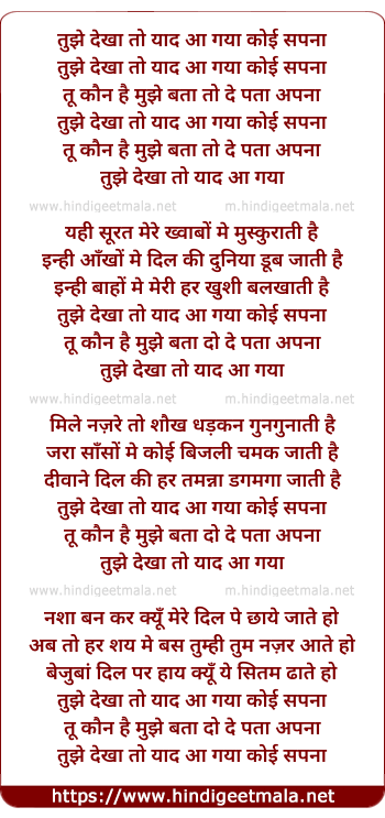 tujhe dekha to yad aa gaya koi sapna