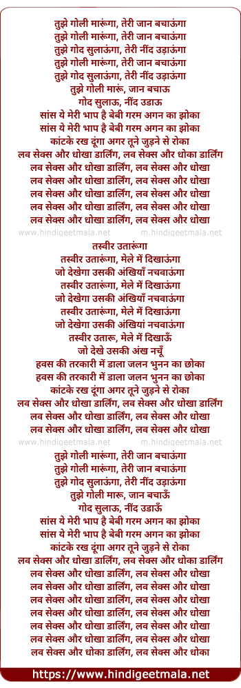 Lyrics of Tujhe Goli Maarunga Teri Jaan Bachaunga - तुझे गोली मारूंगा तेरी जान बचाऊंगा