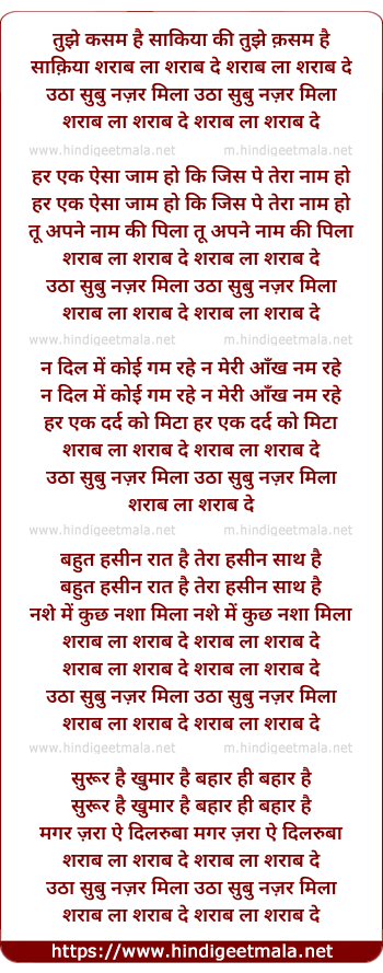 Lyrics of Tujhe Kasam Hai Saqiyaa - तुझे कसम है साकिया की तुझे क़सम है