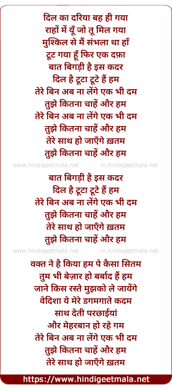 Lyrics of Tujhe Kitna Chahe Aur Hum (Film Version) - तुझे कितने चाहे और हम