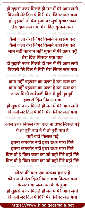 bijali mere dil pe giri mera jigar jal gaya