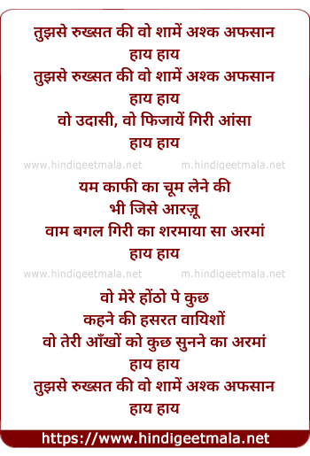 Lyrics of Tujhse Rukhsat Ki Vo Shame - तुझसे रुख्सत की वो शामें अश्क अफसान