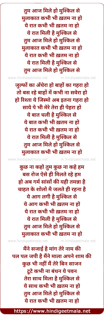 Lyrics of Tum Aaj Mile Ho Mushkil Se - तुम आज मिले हो मुश्किल से