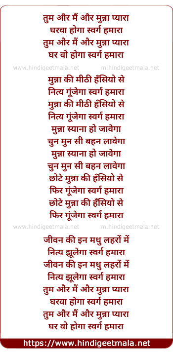 Lyrics of Tum Aur Main Aur Munna Pyara - तुम और मैं और मुन्ना प्यारा