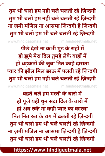 Lyrics of Tum Bhi Chalo, Ham Bhi Chalen, Chalati Rahe Zindagi (Sad - Solo)