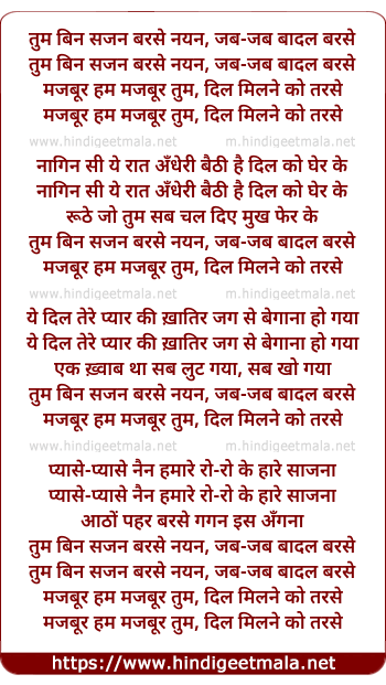 Lyrics of Tum Bin Sajan Barase Nayan - तुम बिन साजन बरसे नयन