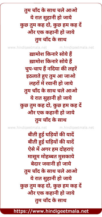 Lyrics of Tum Chand Ke Sath Chale Aao - तुम चाँद के साथ चले आओ