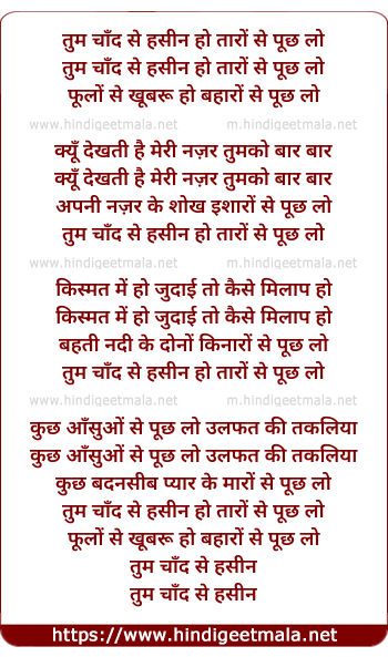 Lyrics of Tum Chand Se Haseen Ho - तुम चाँद से हसीन हो