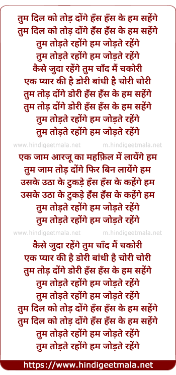 Poetic Translation - Lyrics of Tum Dill Ko Tod Doge - तुम दिल को तोड़ दोंगे