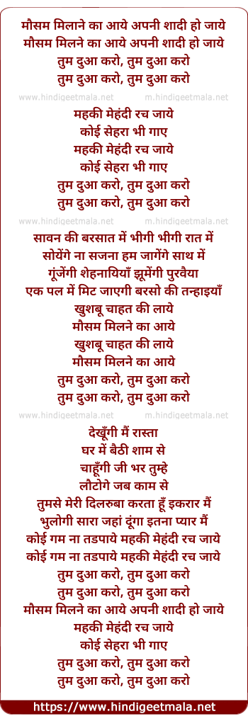 Lyrics of Tum Dua Karo - तुम दुआ करो