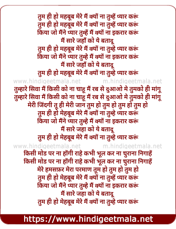 Lyrics of Tum Hi Ho Mehbub Mere Mai Kyu - तुम ही हो मेहबूब मेरे मैं क्यों