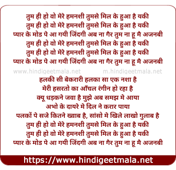 Lyrics of Tum Hi Ho Wo Mere Humnashi - तुम ही हो वो मेरे हमनशी