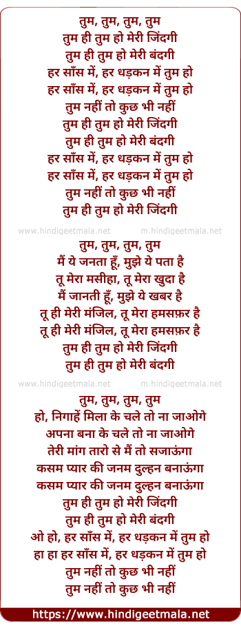 Lyrics of Tum Hi Tum Ho Meri Bandagi - तुम ही तुम हो मेरी बंदगी