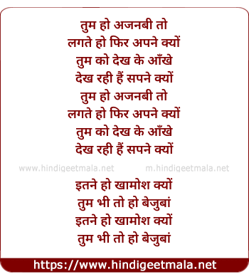 Lyrics of Tum Ho Ajnabi To - तुम हो अजनबी तो