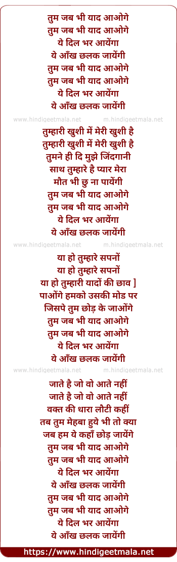 Lyrics of Tum Jab Bhi Yaad Aaoge (2) - तुम जब भी याद आओगे