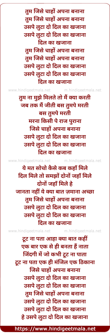 Lyrics of Tum Jise Chaho Apna Banana - तुम जिसे चाहों अपना बनाना