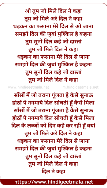 Lyrics of Tum Jo Mile To Dil Ne Kaha - ओ तुम जो मिले दिल ने कहा