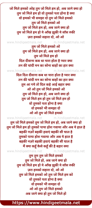 tum jo mile humko tum jo mile hum ho, ab jaane kya ho
