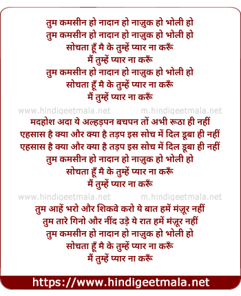 Lyrics of Tum Kamsin Ho Nadan Ho Nazuk Ho Bholi Ho - तुम कमसीन हो नादान हो नाज़ुक हो भोली हो