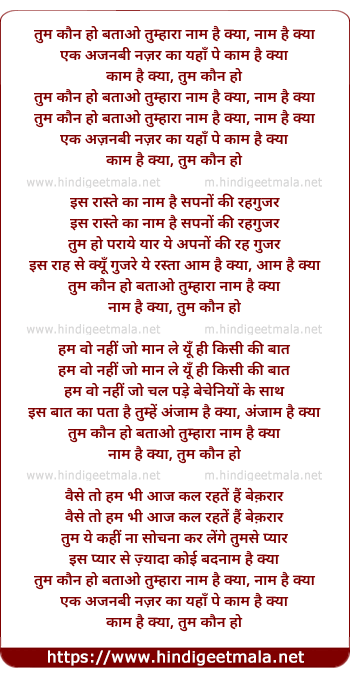 Lyrics of Tum Kaun Ho, Batao Tumhara Naam Hai Kya - तुम कौन हो, बताओ तुम्हारा नाम है क्या