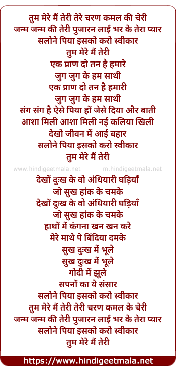 tum mere main teri tere charan kamal ki cheri