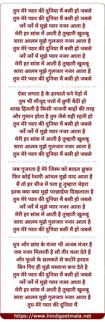 Lyrics of Tum Mere Pyaar Ki Duniya Mai Basi Ho Jabse - तुम मेरे प्यार की दुनिया मैं बसी हो जबसे