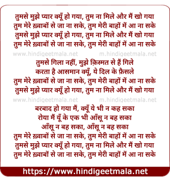 Tum Na Mile Aur Maine Kho Gaya Barbad Ho Gaya Main Kyon Yeh Bhi Na Keh Saka