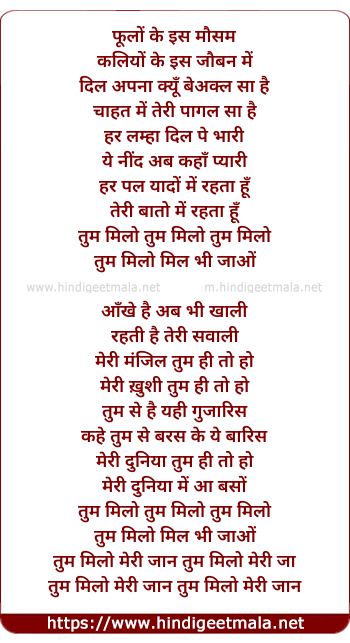 Lyrics of Tum Milo (Live) - फूलों के इस मौसम
