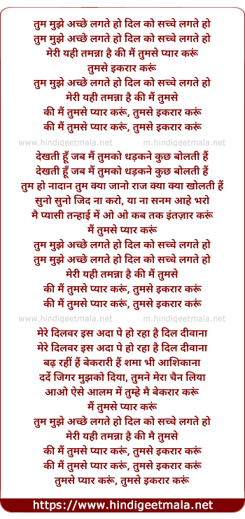Lyrics of Tum Mujhe Achhe Lagte Ho - तुम मुझे अच्छे लगते हो