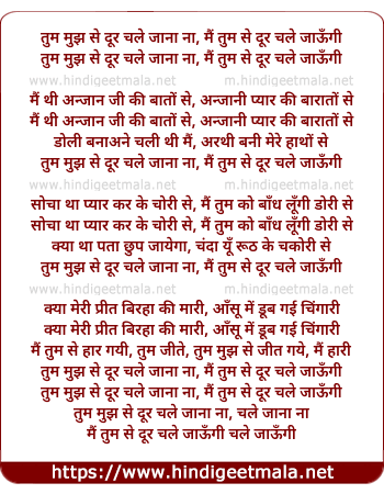 Lyrics of Tum Mujhse Dur Chale Jana Na - तुम मुझ से दूर चले जाना ना