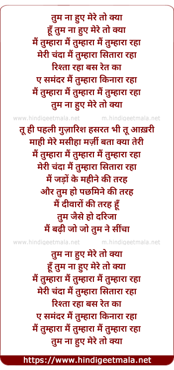 Lyrics of Tum Na Hue Mere To Kya Main Tumhara - तुम ना हुए मेरे तो क्या मैं तुम्हारा