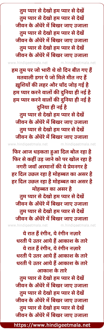 Lyrics of Tum Pyar Se Dekho Hum Pyar Se Dekhe - तुम प्यार से देखो हम प्यार से देखें
