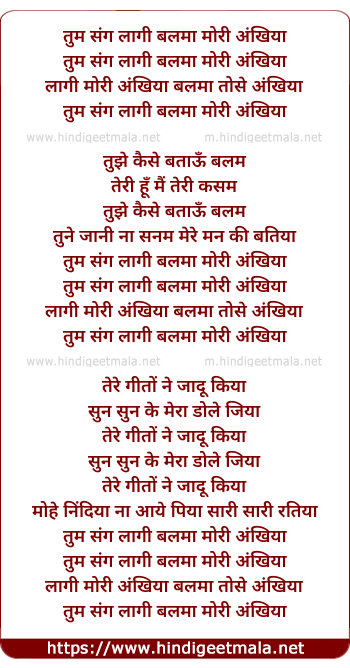 Lyrics of Tum Sang Lagi Balam Mori Ankhiyan - तुम संग लागी बलमा मोरी अंखिया