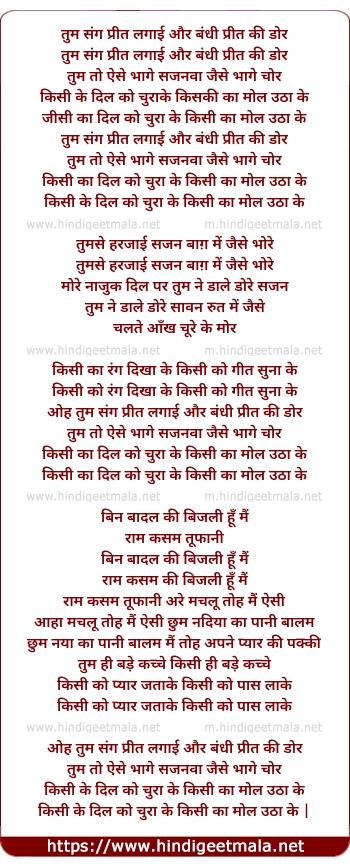 Poetic Translation - Lyrics of Tum Sang Preet Lagai