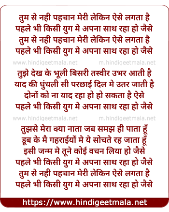 Lyrics of Tum Se Nahi Pehchaan Meri Lekin - तुम से नही पहचान मेरी लेकिन