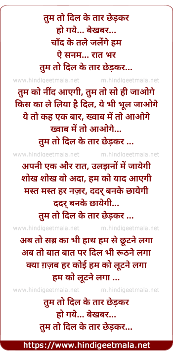 Lyrics of Tum To Dil Ke Taar Chhedkar - तुम तो दिल के तार छेड़कर