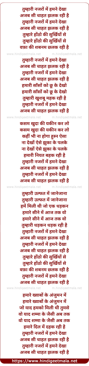Lyrics of Tumhari Nazaro Me Ham Ne Dekha - तुम्हारी नजरों में हमने देखा