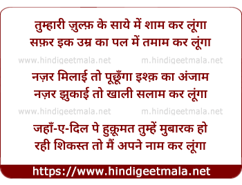 Lyrics of Tumhari Zulf Ke Saye Me Shaam Kar Lunga - तुम्हारी ज़ुल्फ़ के साये में शाम कर लूंगा