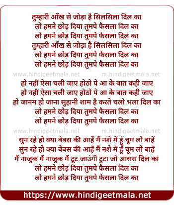 Lyrics of Tumhari Aankh Se Joda Hai - तुम्हारी आँख से जोड़ा है