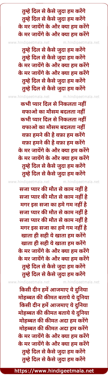 Lyrics of Tumhe Dil Se Kaise Juda Hum Karenge - तुम्हें दिल से कैसे जुदा हम करेंगे