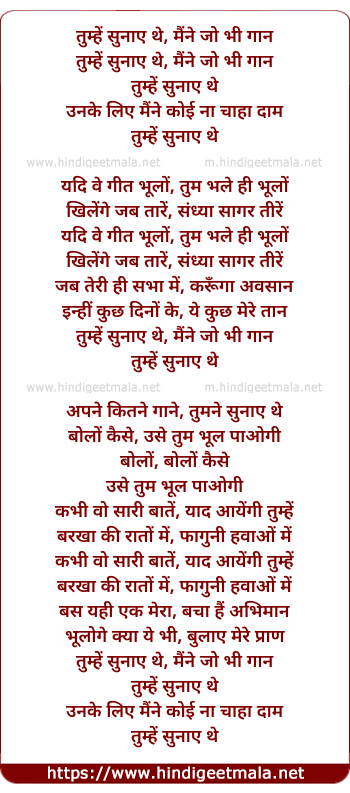 Lyrics of Tumhen Sunaaye The - तुम्हें सुनाए थे, मैंने जो भी गान