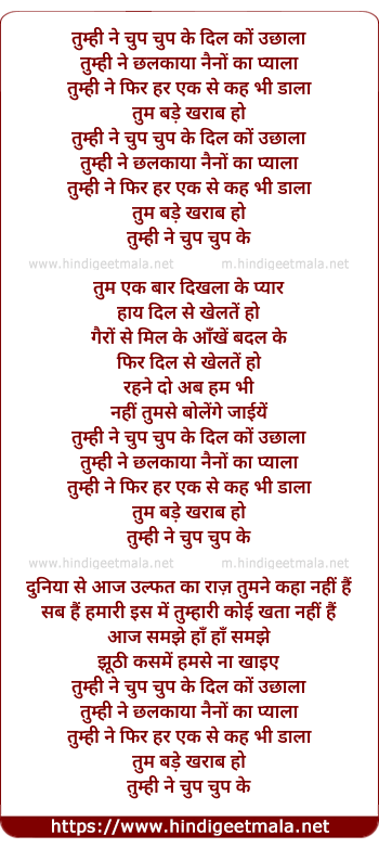 Lyrics of Tumhi Ne Chhup Chhup Ke Dil Ko Uchhala - तुम्ही ने चुप चुप के दिल कों उछाला