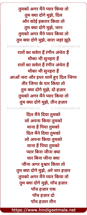 Lyrics of Tumko Agar Pyaar Diya To - तुमको अगर मैंने प्यार किया तो