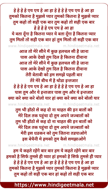 Lyrics of Tumko Kitna Hai Mujhse Pyar - तुमको कितना है मुझसे प्यार